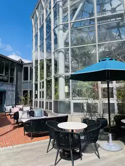 This is one of two stores located within Kobe Nunobiki Herb Garden. It is located in the Glass House area between Sancho Station and Nakama Station. It is divided into a first floor terrace seating area where you can self-serve original burgers and sweets, and a second floor cafe lounge where you can enjoy 12 types of herbal tea, desserts made with seasonal fruits, and hearty roast beef sandwiches.