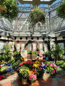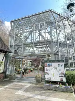 The Glass House Area, located between the summit station and the Nakama station, is a must-see tourist spot when visiting Kobe Nunobiki Herb Garden. The Glass House Entrance is a greenhouse with beautiful glass shapes that let in light, and colorful flowers bloom like a flower field. It is also a popular photo spot.