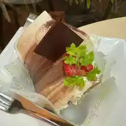 🍫Another piece is the chocolate chiffon cake. It's a Japanese cake, right? It's light and fluffy, the chocolate cream is smooth, mixed with the freshness of the fruit. It's a good and again (380¥).