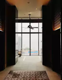 And, when checking in at the front desk on the 17th floor, the sight of the high ceiling void, the fireplace, and the slowly rotating fans gave a sense of time flowing backwards.