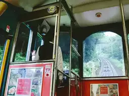 The tram that we took up the mountain is open-air, cutting through the mountain, very close to nature.