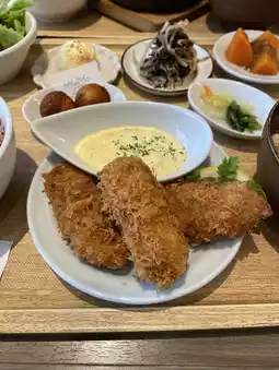 Want to eat Japanese food near Sannomiya Station? But it would be great if it was affordable, tasty, and had plenty of vegetables. This restaurant made that wish come true. They have a partnership agreement with Kobe City and use fresh ingredients shipped directly from local Kobe producers. The healthy set meals, made with natural ingredients, are filling and come with an after-meal drink for 150 yen. Please note that the donut shop is on the first floor and the cafe restaurant is on the second floor, so there are different lines. To eat the set meals, take the stairs on the right to the second floor.