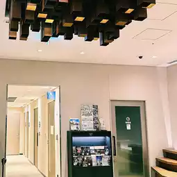 The hotel lobby is mainly designed with wood. In addition to providing wooden seats for guests to sit on, it also places some disposable utensils such as combs, care bags, tea bags, etc.