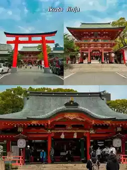 📍 Ikuta Jinja Shrine ~ has a bright vermilion gate and buildings.