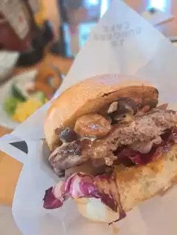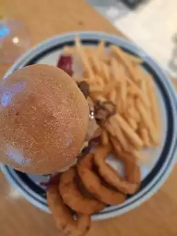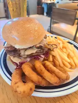 This is a restaurant that mainly serves hamburgers, and at lunchtime, it comes with a salad bar, which is a great deal!