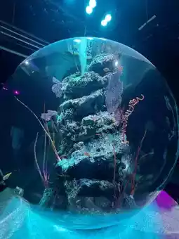 This spherical aquarium allows you to view 360°!! ️ Plus its use of mist and so on makes the whole space more fantastic 🤣