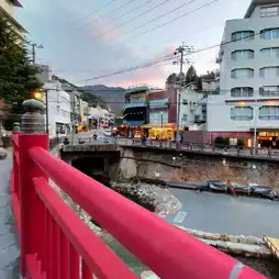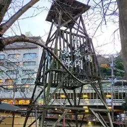 There is also a tower near this bridge where the hot spring called Motoyu comes out.