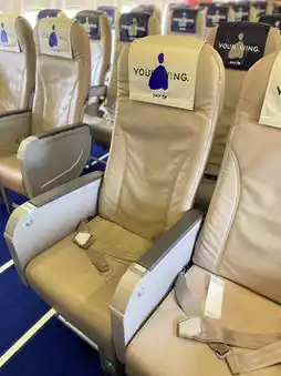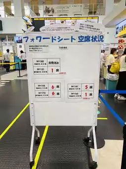 If there are seats available at the airport counter on the day, you can change to a forward seat (front row). It costs 1,000 yen. The main benefits are priority boarding, free services such as snacks, and priority baggage return service. My impression of using it for the first time was that it was comfortable and made me feel a little richer. It was about an hour to Haneda, but it was a good experience. If you use Skymark, check it out.