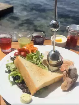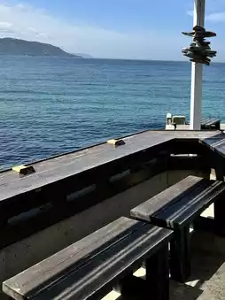 A wonderful cafe with a view of the ocean and the Akashi Kaikyo Bridge as you dine. 🏖️✨