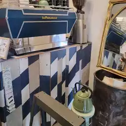 The store is filled with the aroma of coffee and there are many ornamental plants.