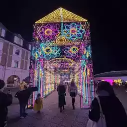 There are many things to see, such as the arch of light and the illuminated tree-lined streets.