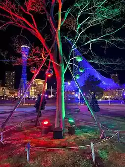 Drones will light up the Christmas show at Meriken Park. Santas and snowmen appear one after another to the music, and you can enjoy a new type of Christmas looking up at the night sky. A sailing ship shines on the sea, and there are trees and illuminations in the venue. It is a recommended Christmas spot if you are sightseeing in Kobe during the period.