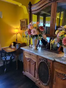 Antique interiors such as Napoleonic furniture and 19th century furnishings add a touch of elegance to the mansion-like setting.