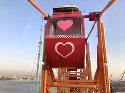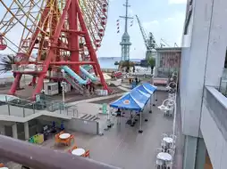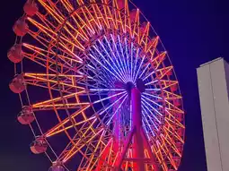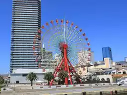 This is a giant Ferris wheel located behind the Mosaic shopping mall in Kobe, Hyogo Prefecture, Japan. This Ferris wheel is brightly colored and very large. The Ferris wheel costs 800 yen per person and is cash only. It takes about 10 minutes per round. The gondola can accommodate 4 people. When the Ferris wheel reaches the highest point, you can see a 360-degree view of Kobe. At night, the Ferris wheel lights up in different colors, creating a beautiful, romantic atmosphere.