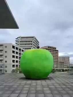 Next to it are Ando's words, "What we are aiming for is not the spirit of a sweet, ripe red apple, but the spirit of a green apple that, even though it is unripe and sour, is full of hope for tomorrow. (Excerpt)," which gives a sense of Ando's passion for his creations.