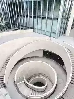 You can enjoy the architectural style of this building, which effectively uses exposed concrete and light.