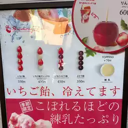 Recommended menu: Strawberries covered with candy, Kyoho grapes covered with candy, apples covered with candy, strawberry cheesecake, strawberry cream puffs