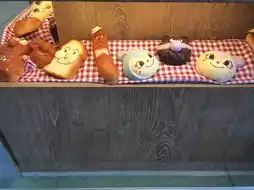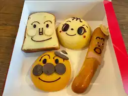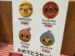 This is an Anpanman character bakery located on the 1st floor of Mosaic Mall in Kobe, Japan. The shop is next to the Anpanman Museum and the giant Ferris wheel. The shop sells freshly baked bread. The unique feature of this place is that they sell bread with the faces of various Anpanman characters.