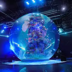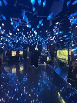 Among all the attractions, the space-themed area near the end was particularly impressive! The spherical aquarium was breathtaking! There were chairs available, so I could sit and admire the view for a while.