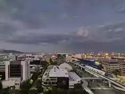 I was assigned a room on the 12th floor of the South Resort Building, facing Osaka. Since I checked in at night, I was given a room with a sunrise view. The room offered a stunning view of the Port Liner, IKEA, and UCC, and featured a spacious resort-style twin room with a balcony. The bathroom was large and separated from the toilet, and the room included a sofa bed.