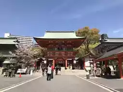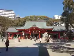 Behind the shrine is the Ikuta Forest. In the forest, there is the Ikuta Shrine's sacred tree "Kusu no Sacred Tree" that has grown for about 500 years. It is quite huge and spectacular, and you can also take a walk to enjoy the cool air.