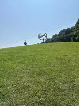 Taking the cable car to the higher grounds of the garden, the round-trip fare is 2,000 yen, and the views along the way are a delightful experience. From above, the entire flower field resembles a golden ocean, leaving one in awe.