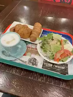 Drinks: Coffee, tea, and cafe latte are refillable.
