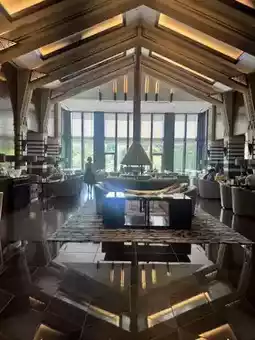 All rooms have hot springs, allowing for private relaxation. Granite fireplaces and chic interiors create the tranquility of a mountain resort.