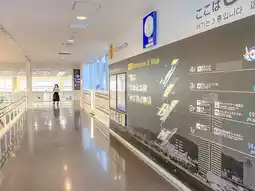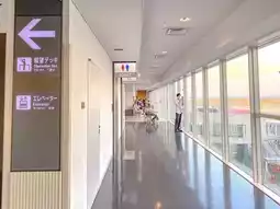 At Kobe Airport, the second floor and above are open to the public. After going up the escalator, you will see a large pane of glass, beyond which you can see the beautiful view of the parking lot and the port. The main facilities, such as toilets, are also located on the second floor.