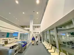 This is what it looked like when I arrived at Kobe Airport on a night flight. There were no flights departing, so the airport's functions were almost completely closed. The surrounding area was completely dark, and buses, taxis, and new transportation services were bustling around to get from Kobe Airport to the city center.