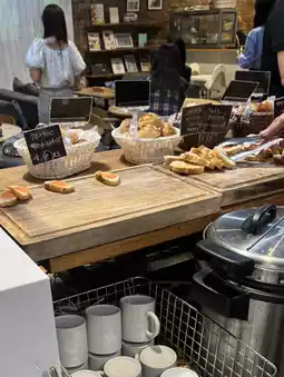 This restaurant offers an all-you-can-eat bread experience with a variety of options. The bread comes in smaller sizes, allowing you to try many different types! Located inside a brick building, the interior is also stylish and charming. The lunch crowd seems to consist mostly of women. Additionally, they serve soup and curry, making it appealing for those who want to enjoy more than just bread!