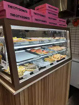 The showcase is lined with colorful donuts. Each one is so cute that deciding which to pick becomes a delightful dilemma ☺️💗.