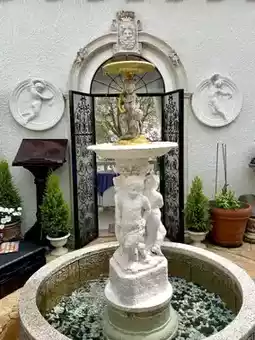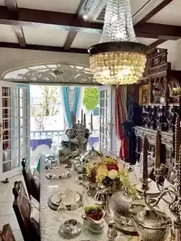 Inside, you’ll find an impressive collection of European antiques, sculptures, and art pieces, giving the space the feel of a small palace. The stained-glass windows and elegant décor transport you straight to Europe.