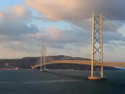 The Akashi Kaikyo Bridge was once the largest suspension bridge in the world, with a length of 3,911 meters and a center span of 1,991 meters, spanning the Akashi Strait between Kobe City and Awaji Island in Hyōgo Prefecture.
