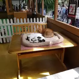 There is also a cute animal area filled with cats and dogs. Watching them sleep is very healing.