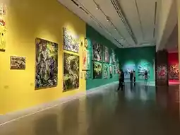 The exhibition featured many works with dazzling colors, but they were all intelligent and witty and interesting.