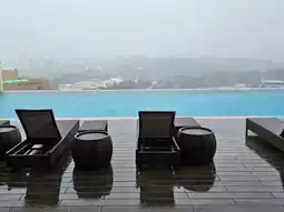 There was also a rooftop pool and a gym with a great view in the distance. There was also a restaurant and cafe inside the hotel building, making it perfect for a ho-kangs.