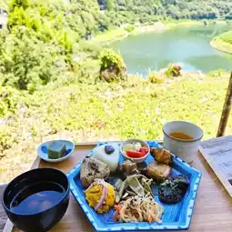 ✨ Features: A farm cafe featuring locally sourced ingredients, nestled in a quiet mountain setting. With a panoramic view of the lake and greenery beyond the windows, you can enjoy meals and sweets while taking in the seasonal scenery. The lunch plates feature colorful seasonal vegetable side dishes, rice balls, and homemade sweets like chilled shiratama (rice dumplings), all with a simple yet carefully crafted flavor. Surrounded by nature, you'll enjoy a relaxing time that will satisfy both your heart and your stomach.