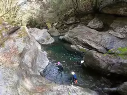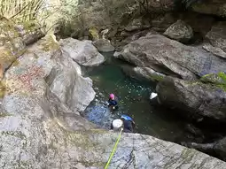 The "Nakatsu Gorge Canyoning Course" focuses on the upper reaches of the Niyodo River and the clear streams of the Nakatsu Gorge