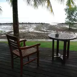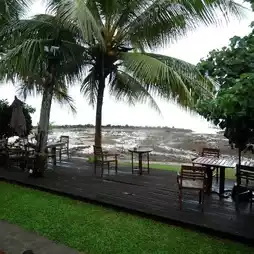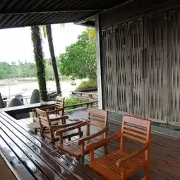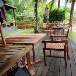 The Coffee Home By Na Tara is part of Na Tara Resort. The atmosphere is peaceful and uncrowded. They have both a resort and a coffee shop. You can sit inside or outside, but sitting by the sea is a great experience. From the ferry pier, it's a bit of a drive, as you seem to turn through mountains. Once you get to the shop, you'll love the tranquil atmosphere, overlooking the water. It's a comfortable place to relax and take beautiful photos.