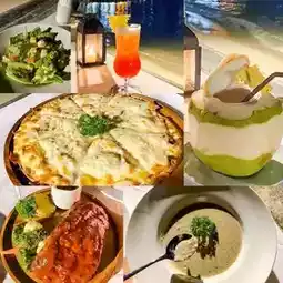 I slept so well on the morning of Day 2. The bed was so comfortable. We went out to take photos on the beach and then had breakfast to recharge before heading out for a full day of diving. Today's activity is a full day of diving. We'll be taking a shuttle to our accommodation, diving at 4 islands, 1 beach, and 1 fishing trip. Food is provided on the boat, which is tasty and easy to eat. The team is very supportive about safety. If you want underwater photos, we can have the staff take them for you. They're beautiful. After a fun day, on the way back, we can stop by the Bang Bao community to buy food and souvenirs. Back for a luxurious beachside dinner. Delicious pizza carbonara, great mushroom soup, and refreshing coconut water. I slept like a log.