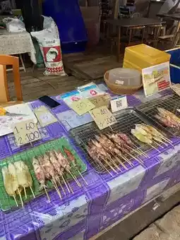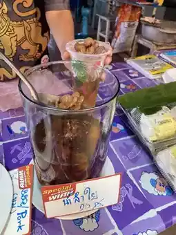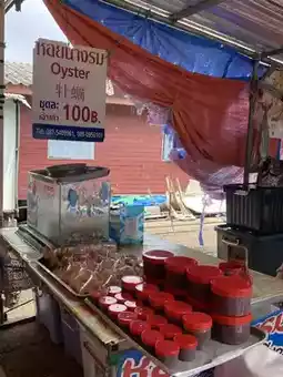 🥗🍗We will .. buy food, shrimp paste, shredded squid. There are also snack shops. Grilled squid, Khanom Krok, Khanom Bueang, ice cream shops, longan juice, grass jelly, roselle 🥤