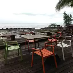 👉Seaside restaurant with a variety of menus to choose from and a cute beach bar
