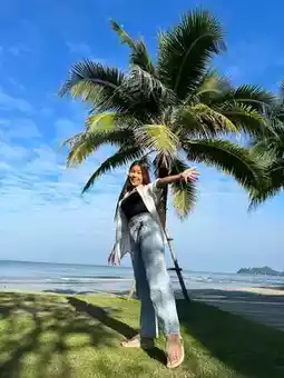 🌈 The highlight that impressed Biologirl was the design concept and the Bamboo Vayna beach bar designed and decorated using woven items, contrasting with the sky, sea water, and coconut trees, making it a very beautiful image.