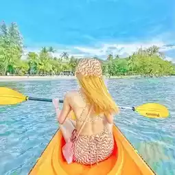 #TravelKohChang, play in the water, paddle a boat, watch the sunset in the evening, it's the best🌅🌅 The daytime is bright, the evening is very romantic🌹🌹 Dinner on the beach, ending with a fire baton show, beautiful, very fire🪄🪄