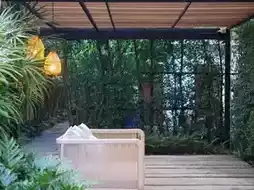 Both the swimming pool corner, the garden corner, and the beach bar corner