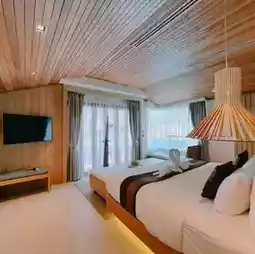 The hotel is located on White Sand Beach, which is the most beautiful and famous beach on Koh Chang. The interior is decorated in a simple style and is shady with large trees. There are complete facilities, including an outdoor swimming pool on the private beach. It's really great. There are many types of rooms to choose from, from Deluxe rooms, Family rooms, Beachfront rooms, to Pool villas!