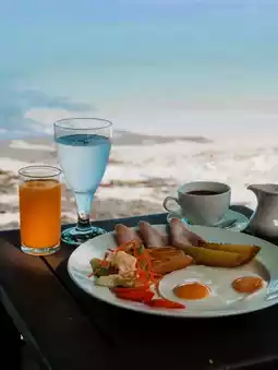 🥪 The breakfast room here is right on the beach. The atmosphere is super nice.