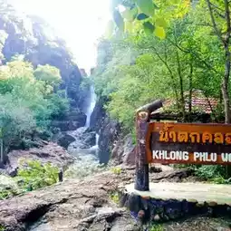 Inside Khlong Phlu Waterfall, there is a 700-meter walkway. Along the way, there is a stream where you can swim. When you reach the top, there is a large pool with a waterfall flowing down. You can swim in the water. **But be careful because the water is very deep, up to your head.