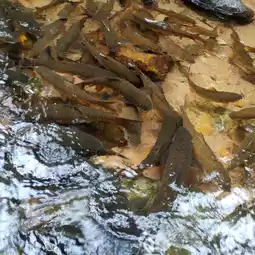 Clear water, cool and fun, lots of fish. Come feed the fish, sit and sip iced tea here.